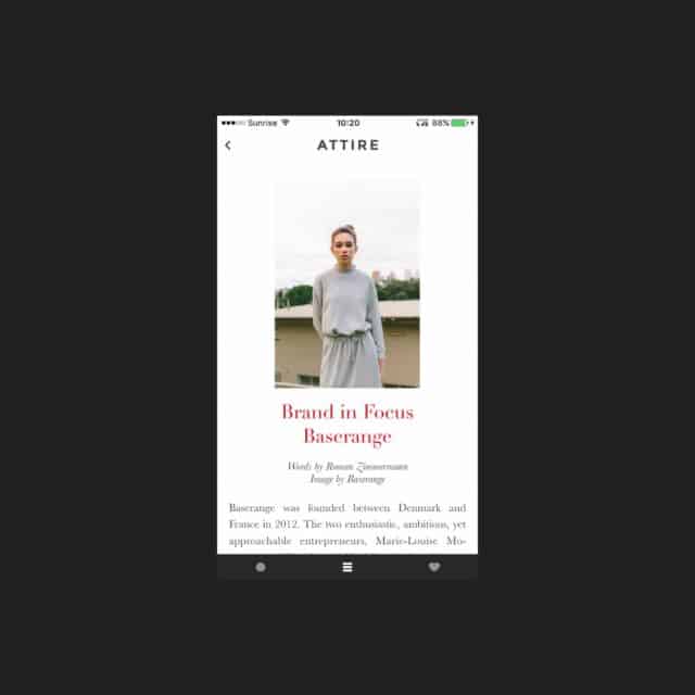 Attire wurde ursprünglich als eine native iOS App in’s Leben gerufen. Im Zentrum der App steht der Instagram-ähnliche Feed, der dem User die neuesten Produkte präsentiert, dank dem Filter kann die Auswahl eingeschränkt werden und persönliche Favoriten können in der Wishlist abgespeichert werden. Hinzu kommt das Story Feature auf dem internationale Gastautoren ihre Beiträge zu Produkten, Marken und weiteren Themen aus der Attire-Welt veröffentlichen.
