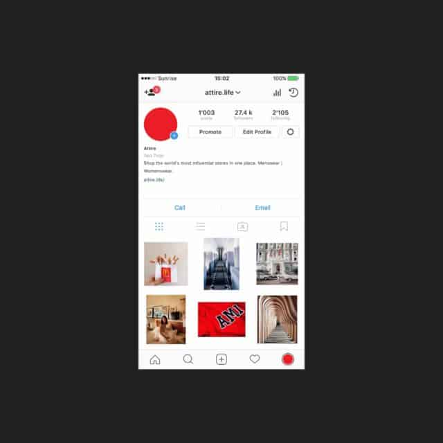 Instagram ist für Attire der wichtigste Kommunikationskanal. Noch vor der Lancierung der Shopping-Plattform, wurde das Instagram Profil eingerichtet und eine erste Gefolgschaft aufgebaut. Dank relevantem Content, präzisen Werbekampagnen und Partnerschaften mit ausgewählten Influencern, gewann das Projekt rasch an Aufmerksamkeit und gewann innert einem Jahr über 20’000 Follower.
